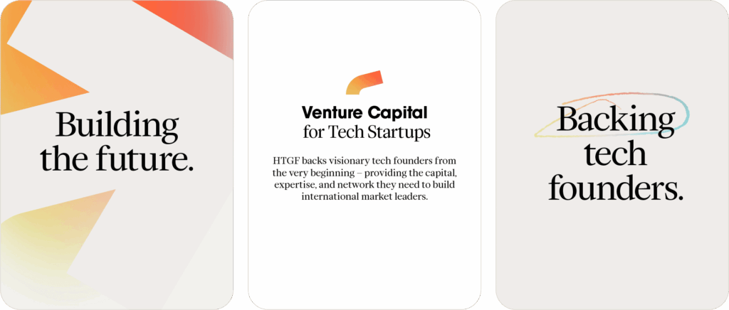 Der High-Tech Gründerfonds (HTGF) ist ein Seed-Investor, der innovative Technologie-Startups in der Frühphase unterstützt. Für das Rebranding haben wir das Corporate Design, Web-, Messe-, Event- und Interiordesign, sowie Merchandising und die Geschäftsausstattung neu konzipiert und gestaltet.