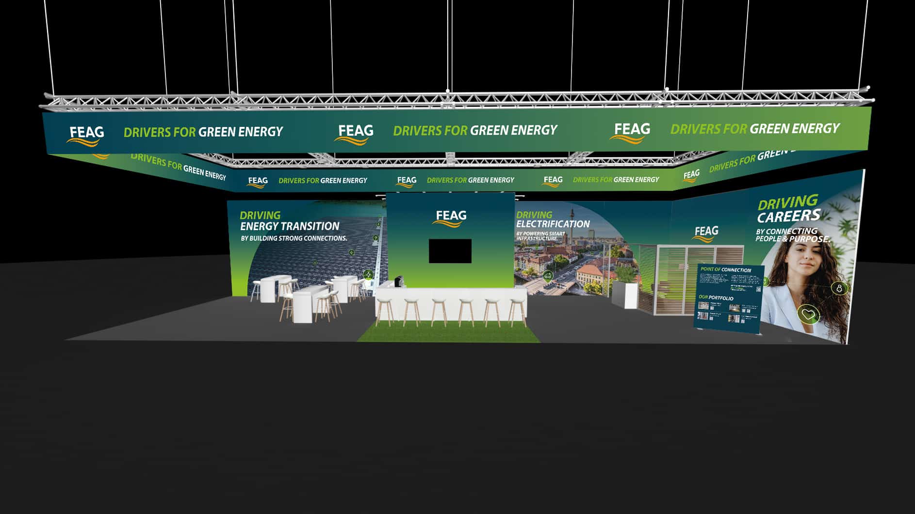 Wir durften zusammen mit den Meta Metaniacs den Messestand für FEAG auf der Intersolar 2025 in München konzipieren und designen. FEAG gestaltet als „Driver for Green Energy“ die Energiewende aktiv mit.
